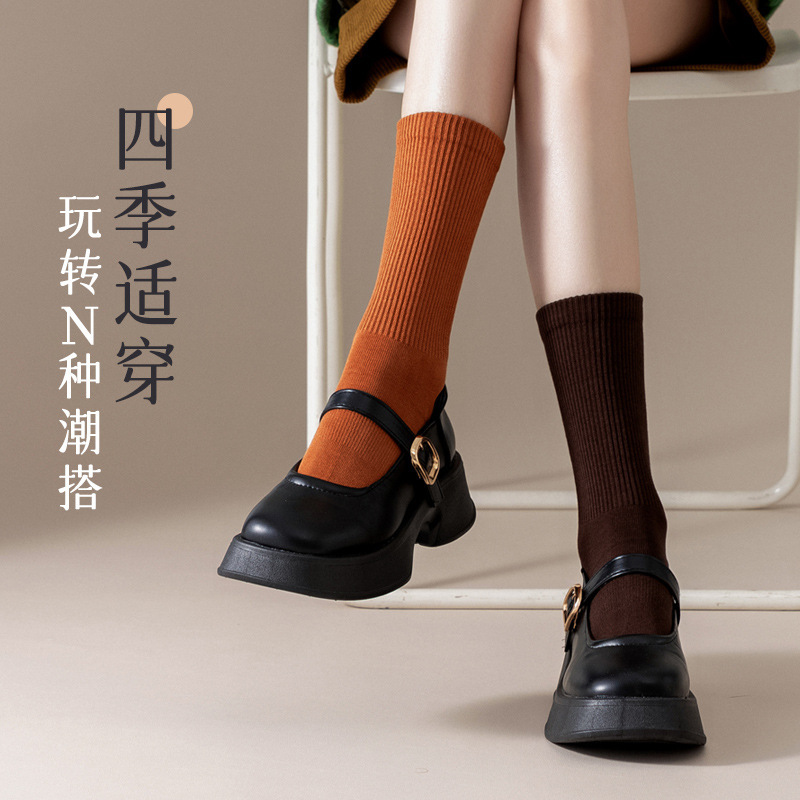 女士美拉德棉袜抗菌新疆棉袜子休闲运动袜秋冬长筒袜高筒女袜